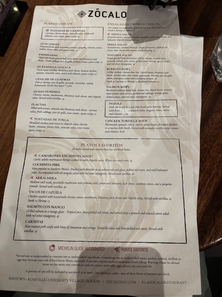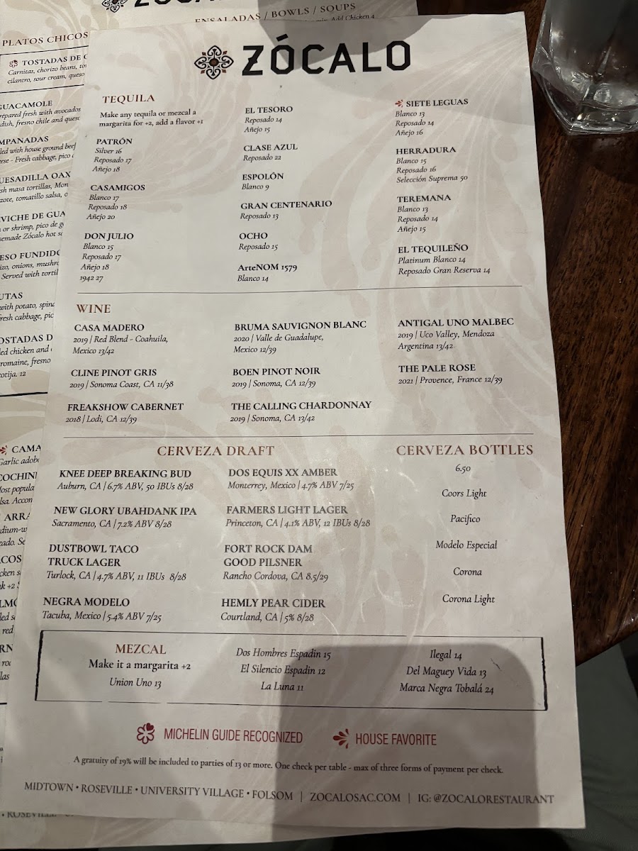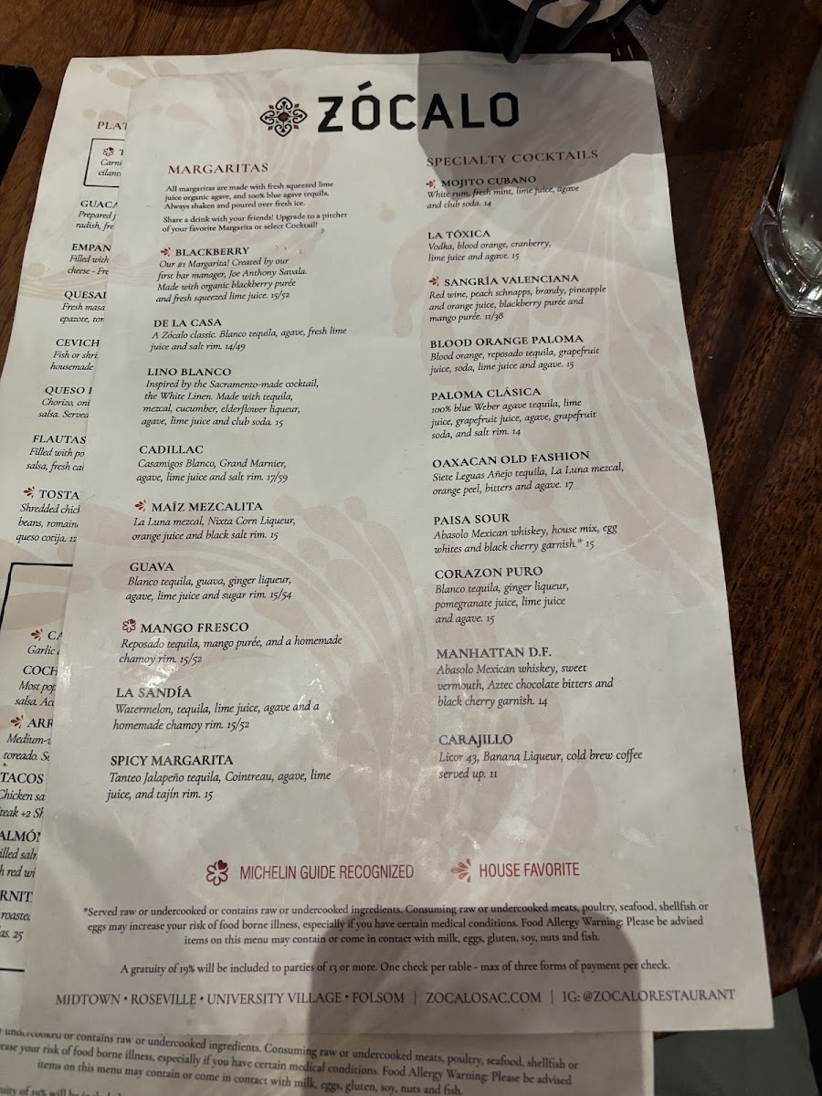 Zócalo Folsom Menu