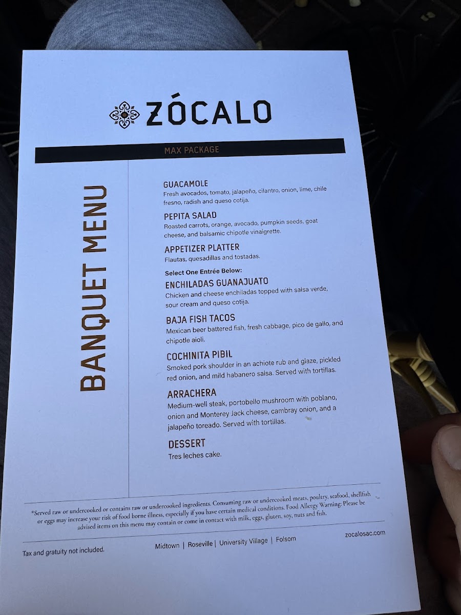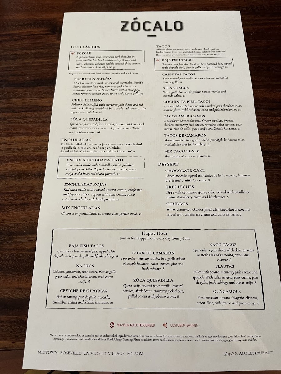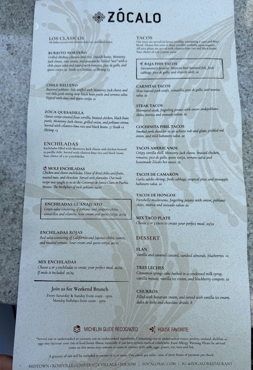 Zócalo Folsom Menu